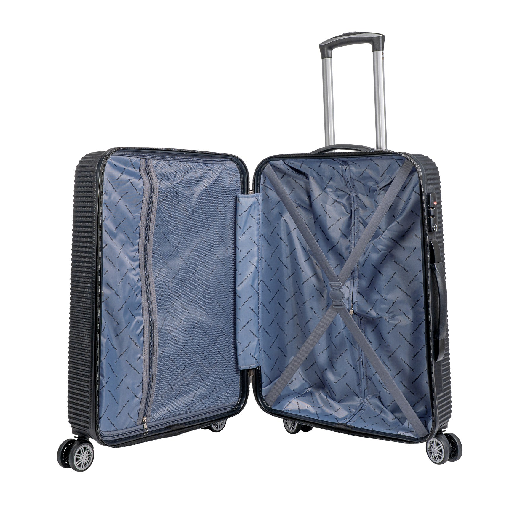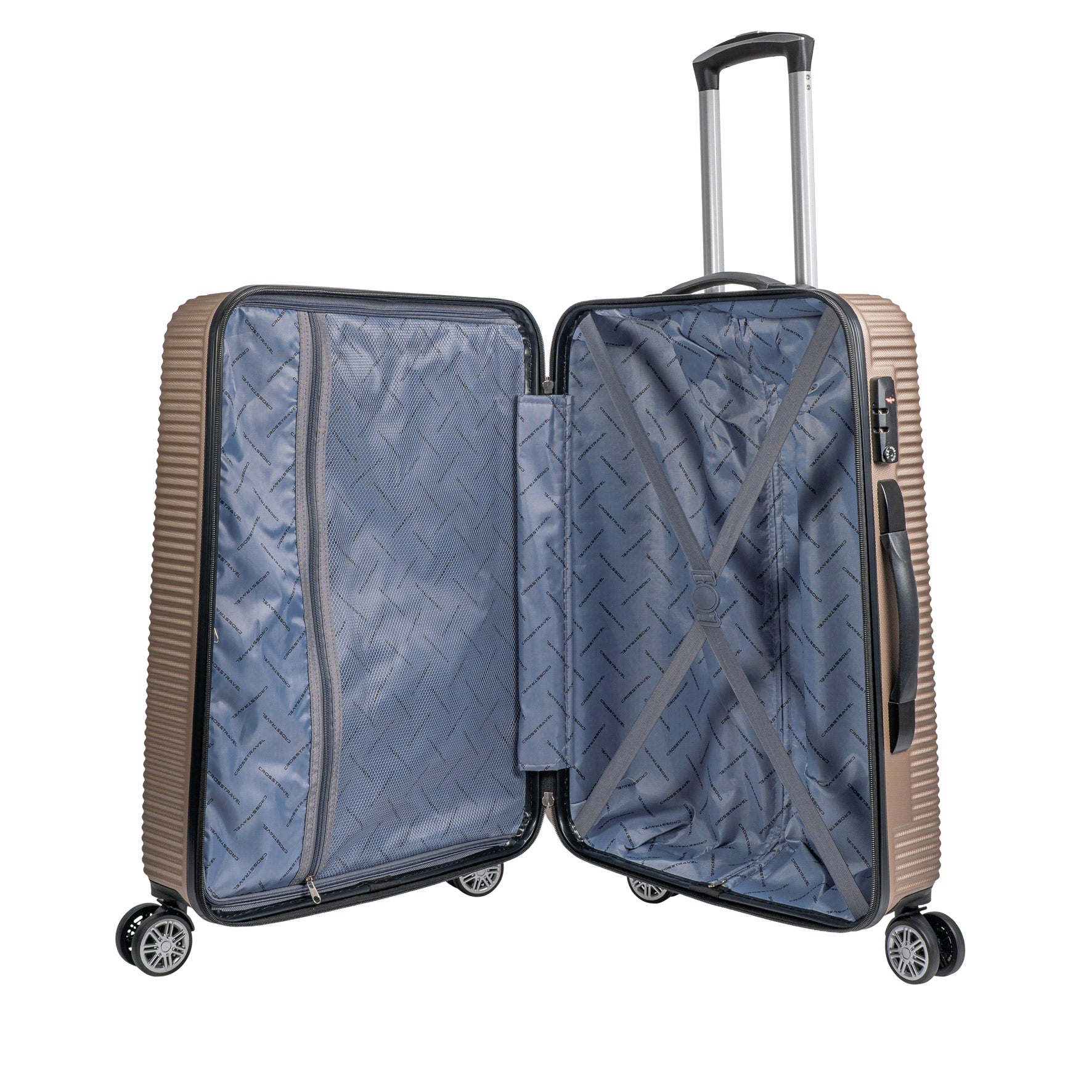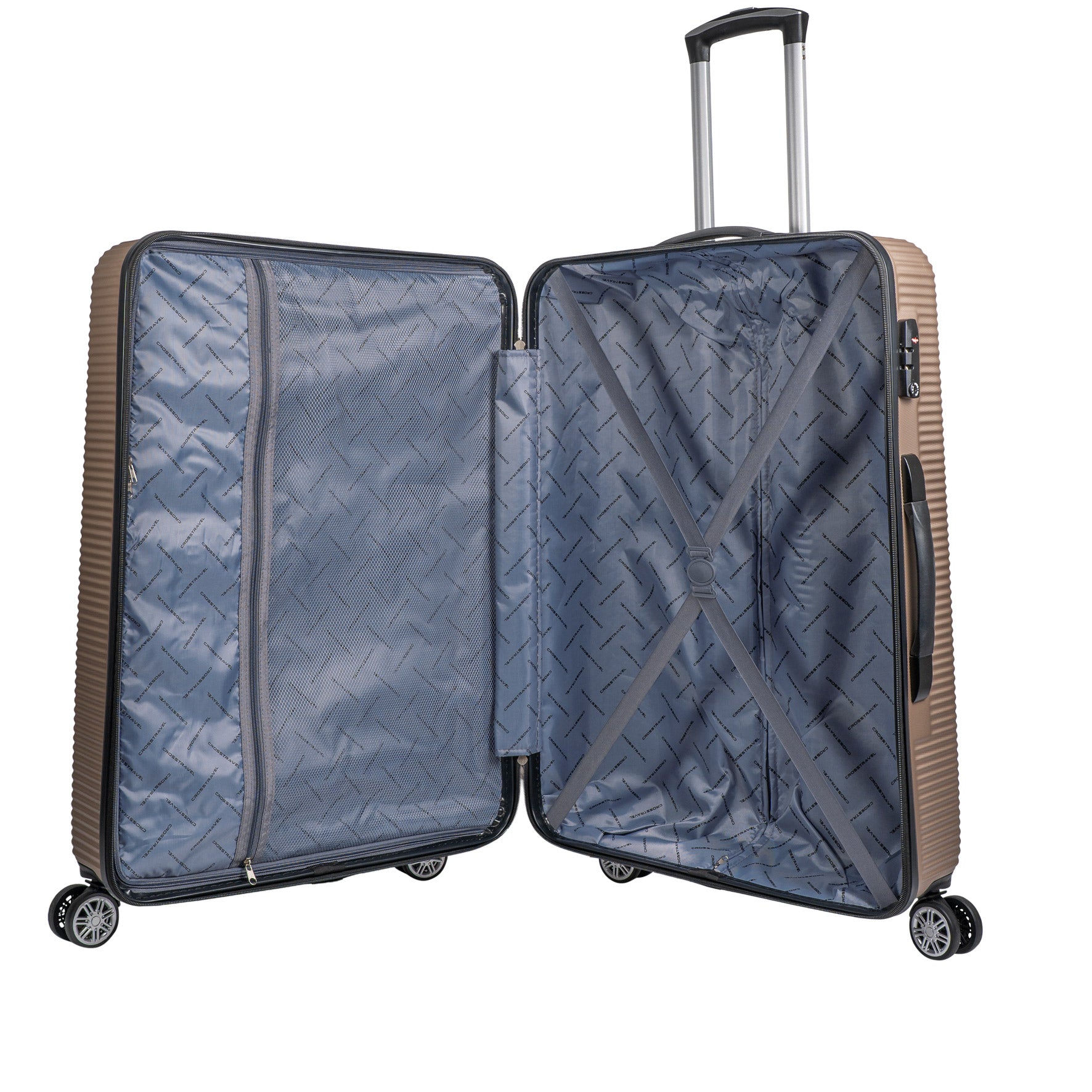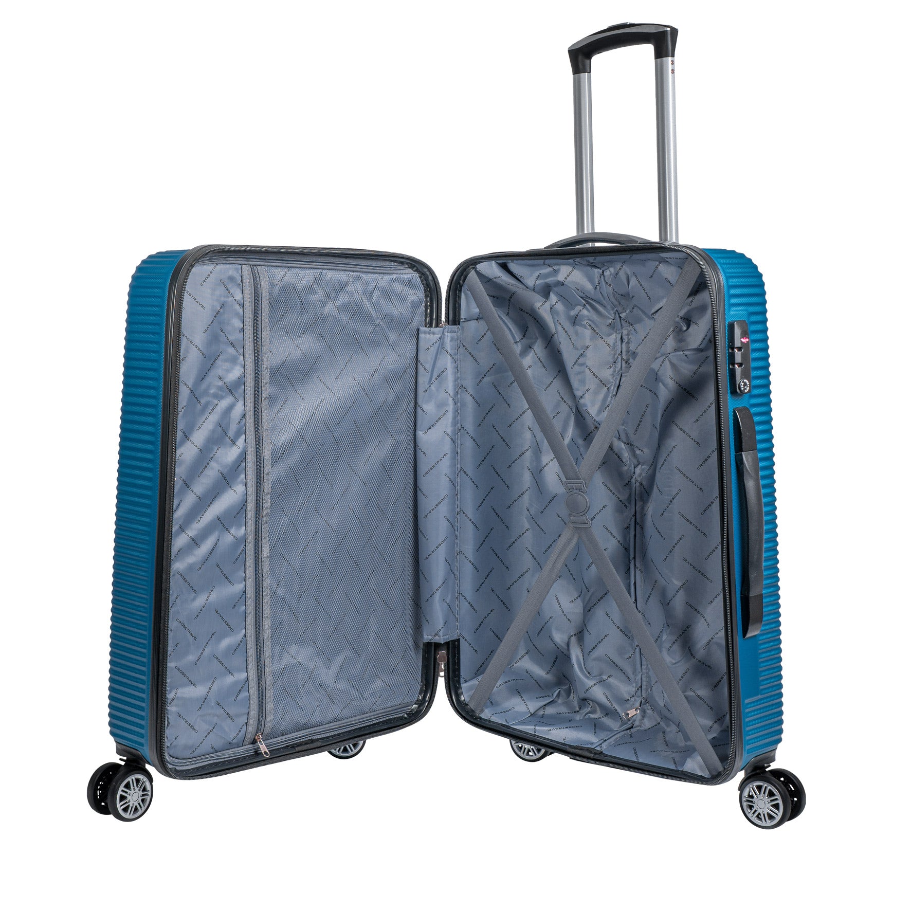 The high-quality Richmond suitcase series in a striking ribbed look. The case has a hard-shell construction made of robust, water-repellent ABS material and is sturdily constructed. The smooth-running wheels make these suitcases easy to transport to your destination. TSA locks can be opened by customs using a special key without damaging the suitcase. Metal handle caps reduce the risk of the suitcase being torn open.