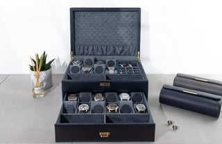 Nos belles boîtes de montres sont non seulement extrêmement fonctionnelles, mais aussi un véritable porte-œil dans chaque pièce. Ils offrent de l'espace jusqu'à 20 heures et ont des sujets pratiques dans lesquels d'autres accessoires peuvent être rangé en toute sécurité.