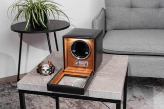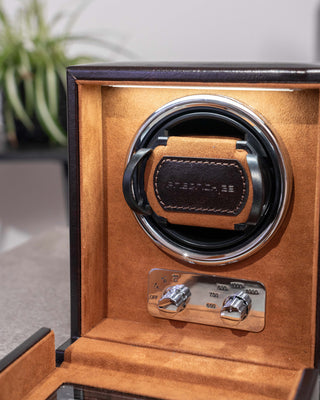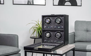In de watchwinders uit onze Bond-serie worden uw kostbare horloges veilig opgeborgen en beschermd tegen stof, stoten en andere invloeden van buitenaf. De elegante koffers zijn, passend bij de kostbare inhoud, met de hand vervaardigd van fijn kunstleer en hoogwaardige afwerking. De voering van velours is met zijn zachte oppervlak uitermate geschikt voor waardevolle horloges. Een glazen deksel zorgt voor decoratieve accenten.